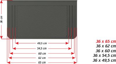 | Genişlik | 65 cm , 62 cm , 60 cm , 54 cm , 49 cm |